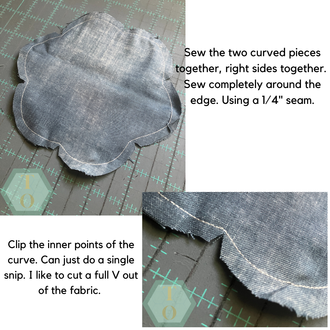 The original didn’t include the seam allowance in the curved edge templates. It also wanted a lot of handstitching to turn under the curved seam.