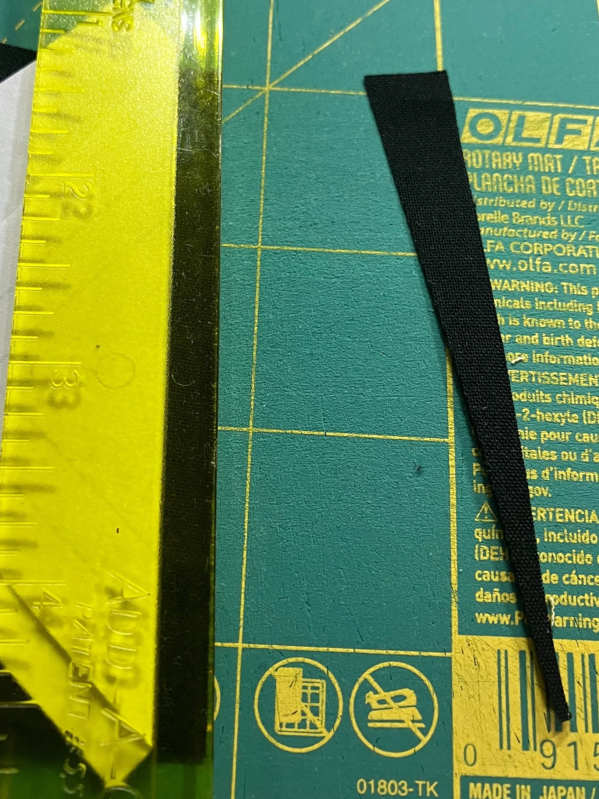 With the fabric side down, place your foundation on a cutting mat and fold back the paper on your sewing line. Using an Add-a-Quarter ruler, line it up against your fold and trim your fabric (this will leave your 1/4” seam extending past your sewing line).