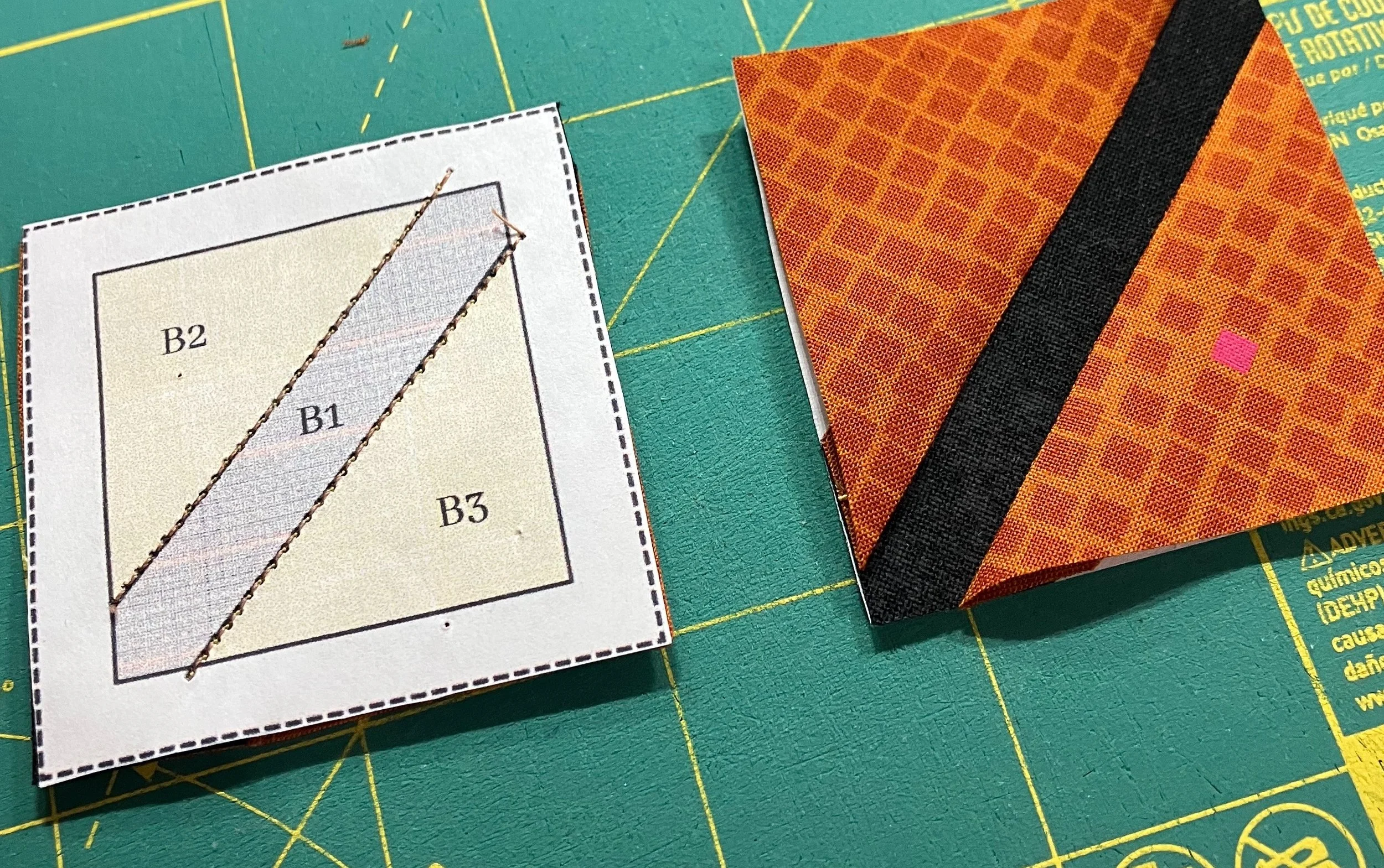While this shape is simple, the principle is the same for more complex FPP blocks. Follow the sections in order, trimming away excess fabric as you go until the entire block is complete.